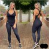 Produto: Macacão com modelagem que valoriza as curvas e detalhes delicados de alças e tiras no busto e decote das costas. Suas alças são revestidas com elástico, o que assegura boa sustentação para qualquer prática física.